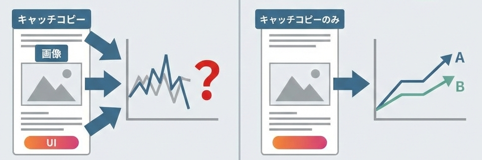 複数の要素を同時に変更してしまうと、「どの変更が効果につながったのか」が分からなくなってしまいます。