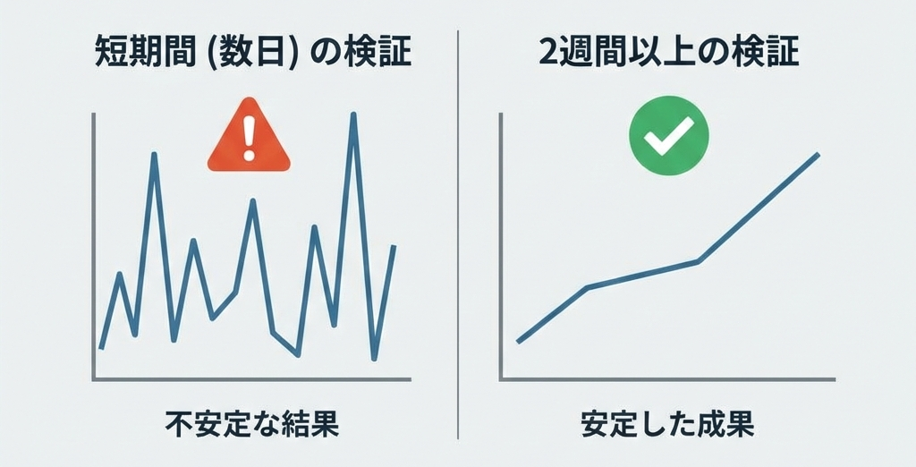 ユーザーの行動は日によって変化することがあるため、短期間の結果だけで判断すると、正しい結論を導けない可能性があります。