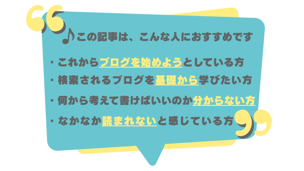 ブログを書くときは、「誰の、どんな悩みを解決する記事なのか」を最初に決めることが大切です!